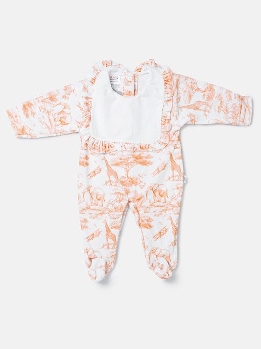 Baby Grow for Girls Safari Collection with Frilled Bib - Orange