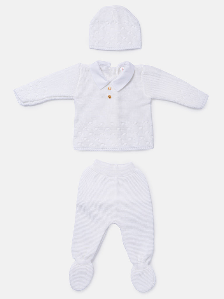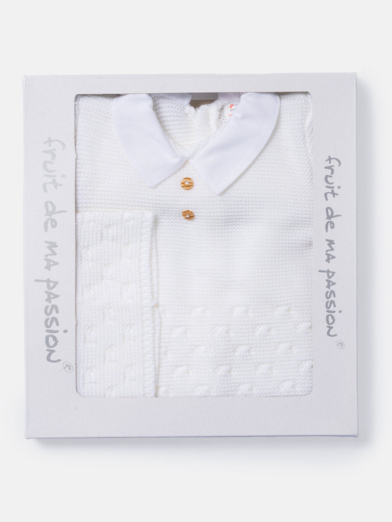 Baby Boy 3-Piece Knitted Shirt Collar Gift Box Set - Ivory