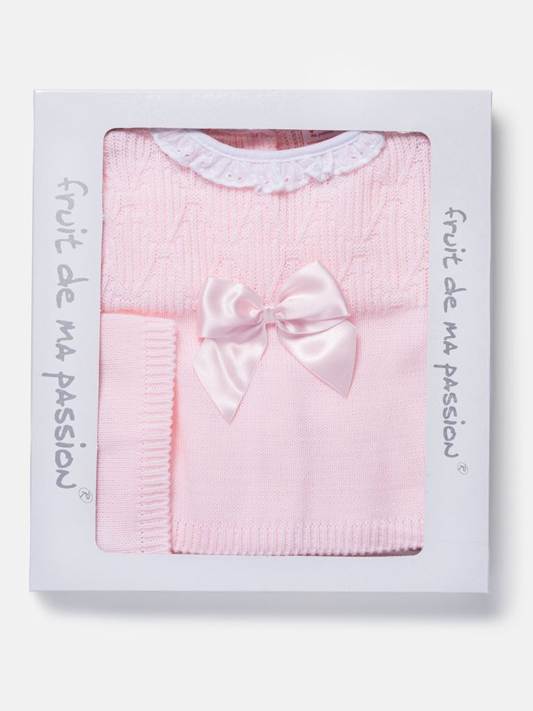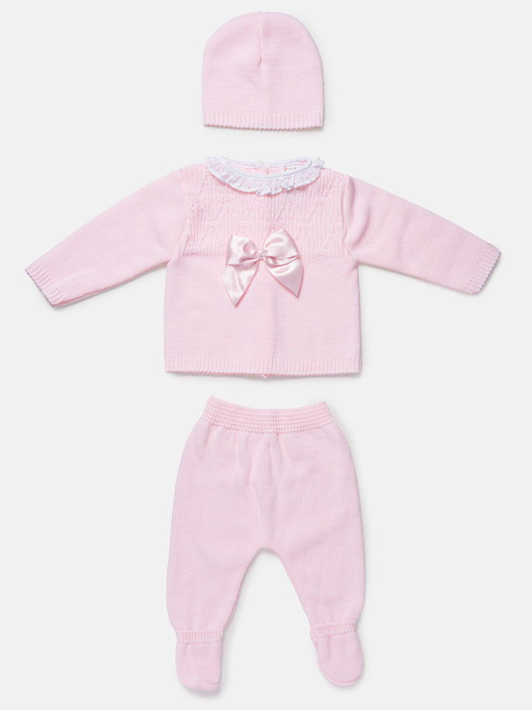 Baby Girl 3-Piece Knitted Pattern Top Gift Box Set - Baby Pink