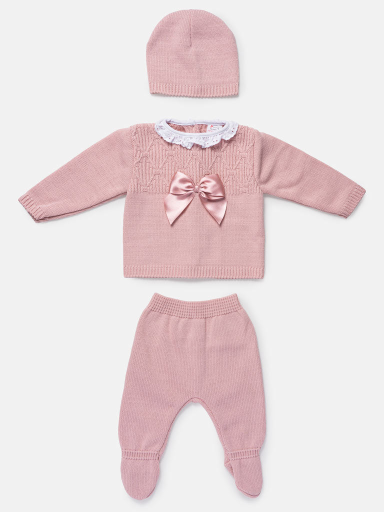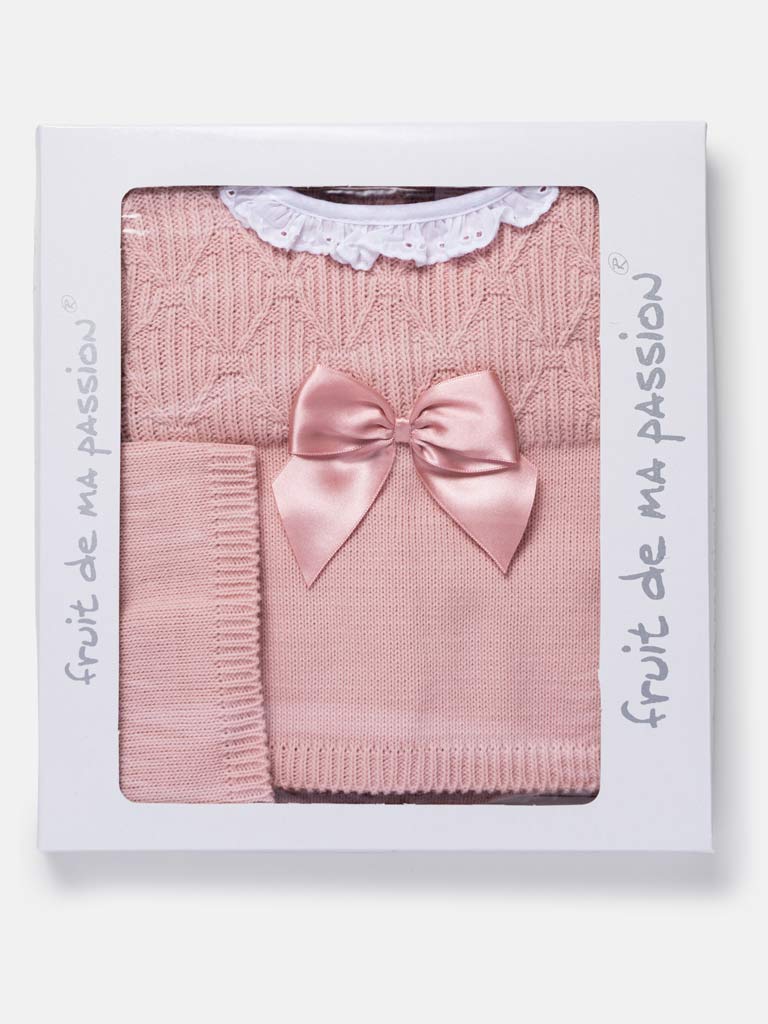 Baby Girl 3-Piece Knitted Pattern Top Gift Box Set - Rose Pink