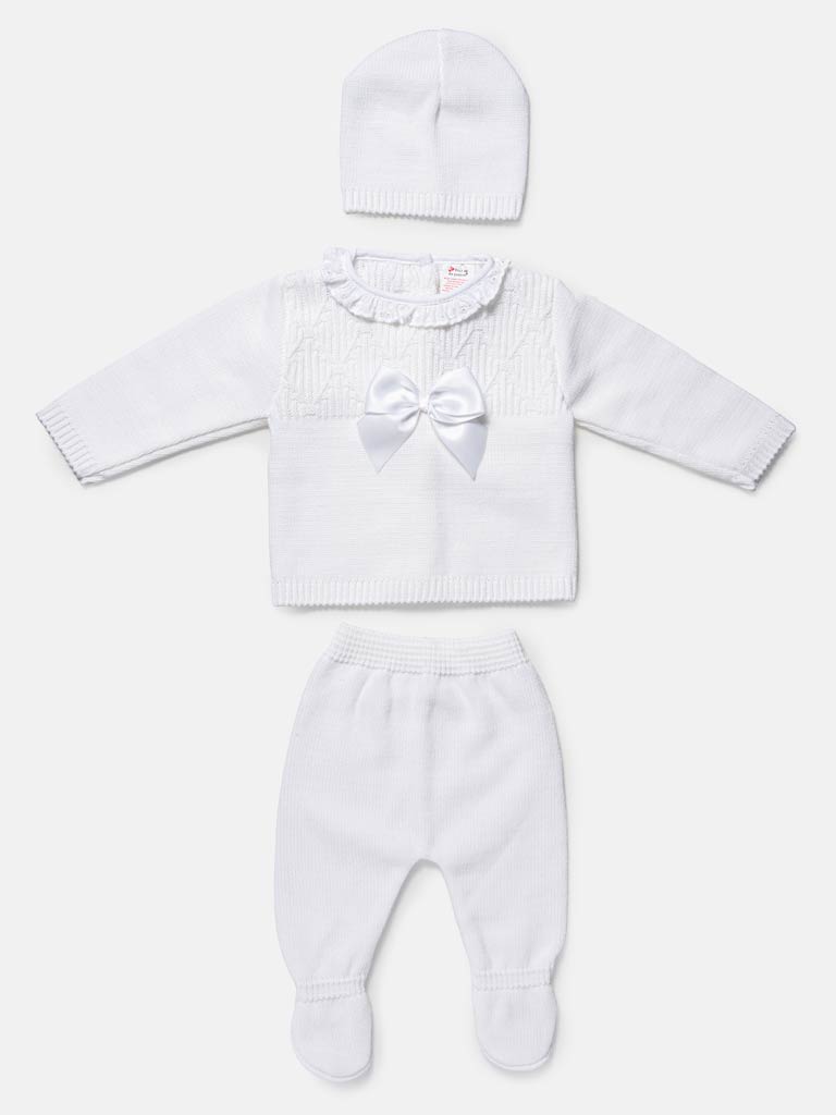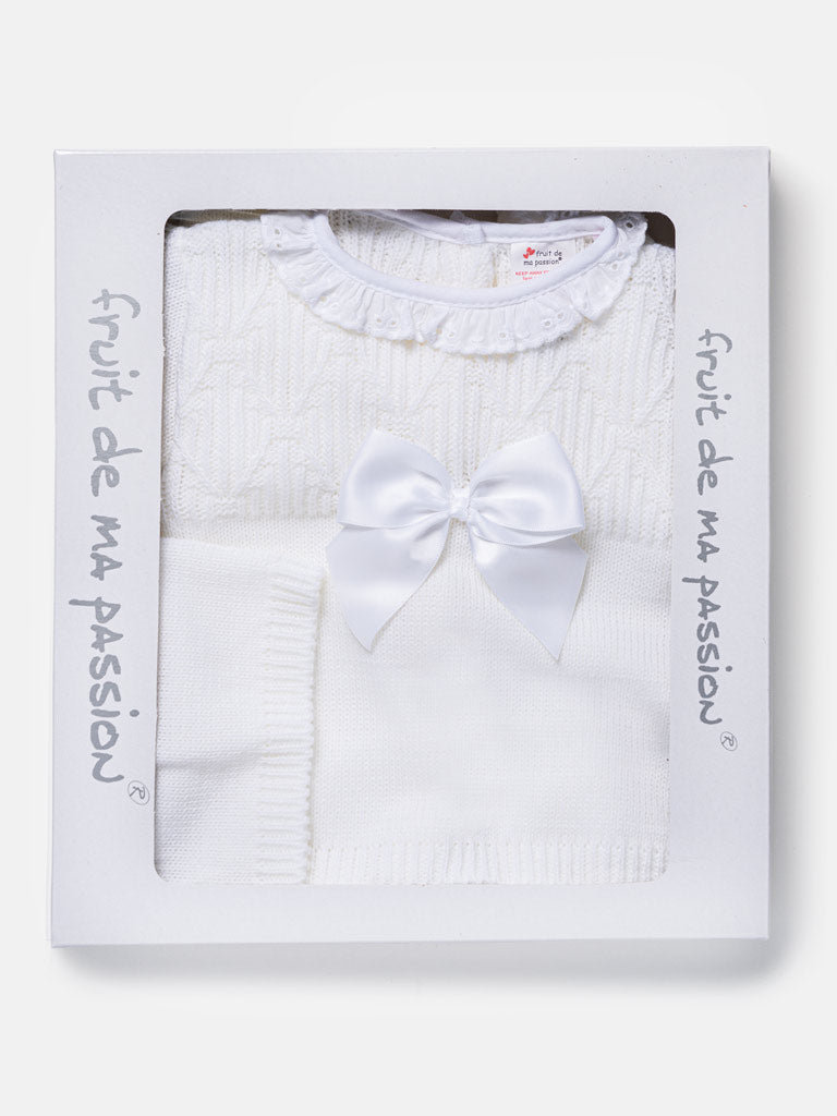 Baby Girl 3-Piece Knitted Pattern Top Gift Box Set - White