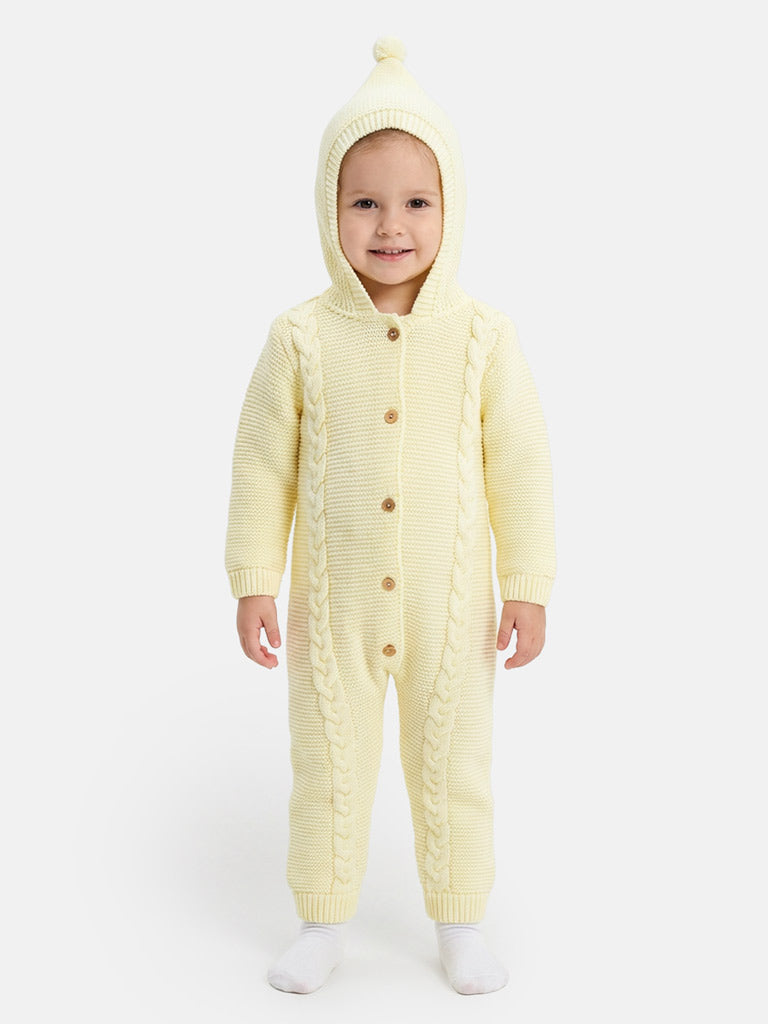 Baby Sol Collection Knitted Hooded Pramsuit - Lemon Yellow
